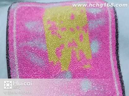 先印輝彩印花材料的HC-800粘珠漿一次吹干打底,然后再印第二次時(shí)以膠珠的大小來確定印粘珠漿的厚度,或是印第三次粘珠漿以便留有足夠的粘珠漿