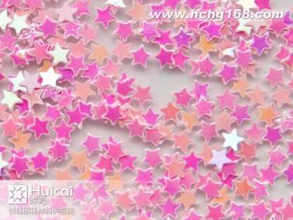 金蔥粉:又名閃光片。包括鋁質(zhì)金蔥粉,聚酯金蔥粉,幻彩粉,鐳射金蔥粉等。有鋁質(zhì),PET,PVC材質(zhì)。大小規(guī)格(size)由1/256(0、1mm)至1/8(3、0mm)。形狀有六角形,四角形,長條針形和不規(guī)則形狀,并有多種顏色可供選擇。各種材質(zhì)金蔥粉可不同程度承受高溫(由80*C,180*C,300*C不等) 。