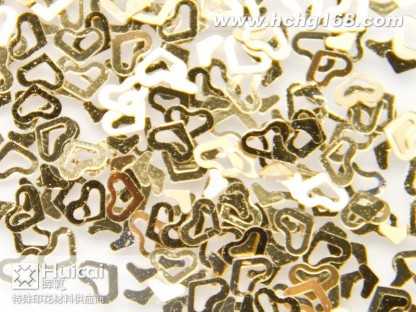 金蔥粉:又名閃光片。包括鋁質(zhì)金蔥粉,聚酯金蔥粉,幻彩粉,鐳射金蔥粉等。有鋁質(zhì),PET,PVC材質(zhì)。大小規(guī)格(size)由1/256(0、1mm)至1/8(3、0mm)。形狀有六角形,四角形,長條針形和不規(guī)則形狀,并有多種顏色可供選擇。各種材質(zhì)金蔥粉可不同程度承受高溫(由80*C,180*C,300*C不等) 。