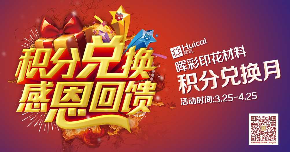在此輝彩印花材料也把積分兌換月活動(dòng)從三月二十五延遲到四月二十五;詳情加入輝彩公眾微信號(hào) hchg168;