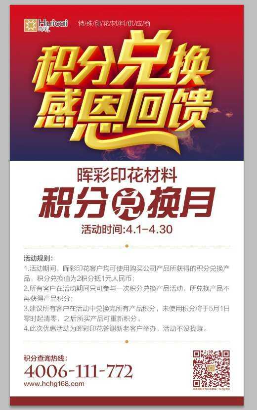 關(guān)鍵字: 輝彩印花材料感恩回饋(積分兌換月)優(yōu)惠活動