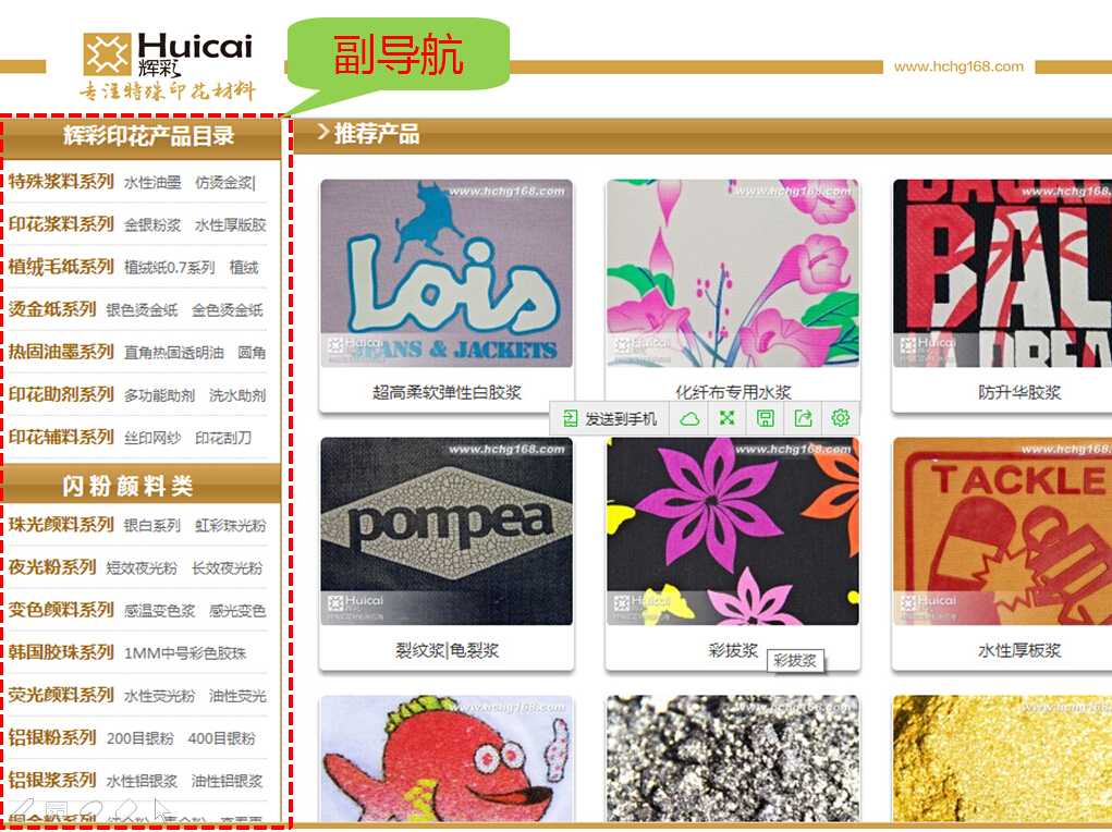 仿燙金漿 /熱固油墨 /厚版漿 /防升華膠漿 /裂紋漿 /彩拔漿 /洗水牛仔漿 /仿拔印漿 /絨面效果漿 /彩色熱固油 /更多+印染印花助劑 >>