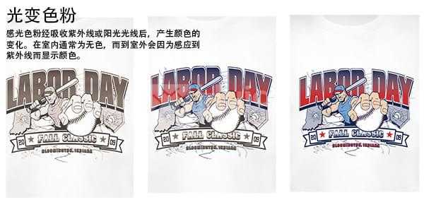 光變粉是經(jīng)紫外線或陽光照射,吸收紫外線或陽光后,而產(chǎn)生顏色的變化,當(dāng)失去紫外線或陽光照射時(shí),即回復(fù)到原來的顏色。感光變色粉在室內(nèi)為無色,在室外感應(yīng)到紫外線后顯示顏色。