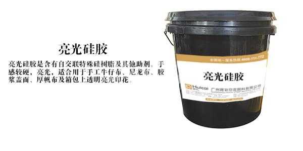 亮光透硅膠是含有自交特殊硅樹脂及其他助劑,產品彎曲及回彈性強,干濕擦特強,表面成硬膜堅硬,透明亮光,抓布特強,在攝氏零下20度不會龜裂,特別適合膠漿表面印花,水性硅膠適合用于手工牛仔布、尼龍布、膠漿蓋面、厚帆布及箱包上透明亮光印花