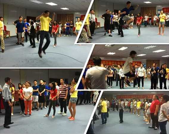 上圖為“一個都不能少”跳繩游戲體驗, 挑戰(zhàn)78個參與者在1個半小時內(nèi)按規(guī)則跳繩,再次激發(fā)團隊成員相信自己、講究策略、團結(jié)一心、不拋棄不放棄的精神。最終,3個小時完成游戲體驗,超越極限。讓每個人都感覺到自信的力量和團隊團結(jié)一致的重要性!