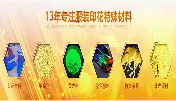 鐳射金蔥粉 /鋁銀粉 /鋁銀漿 /圓形閃光片 /金粉 /金蔥粉 /水性鋁銀漿 /印花金銀粉 /特閃金粉 /珠光粉 /幻彩金蔥粉 /更多+輝彩首頁(yè) | 印花材料 | 銅金粉 | 夜光粉 | 變色顏料 | 印花助劑 | 珠光顏料 | 仿?tīng)C金漿 | 輝彩視頻 | 輝彩簡(jiǎn)介 | 聯(lián)系輝彩