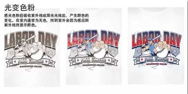 感光變色粉是經(jīng)紫外線或陽光照射,吸收紫外線或陽光后,而產(chǎn)生顏色的變化,當失去紫外線或陽光照射時,即回復到原來的顏色。