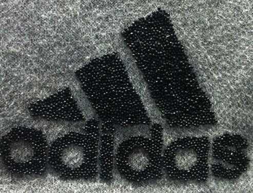 印刷工藝:印刷兩次至三次,高牢度粘珠漿印后趁濕灑上塑膠珠然后、150-160度烘干壓燙即可……