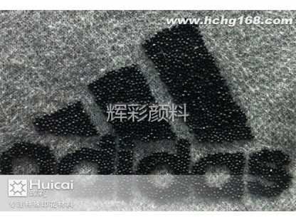 先印輝彩印花材料的HC-800粘珠漿一次吹干打底,然后再印第二次時以膠珠的大小來確定印粘珠漿的厚度,或是印第三次粘珠漿以便留有足夠的粘珠漿
