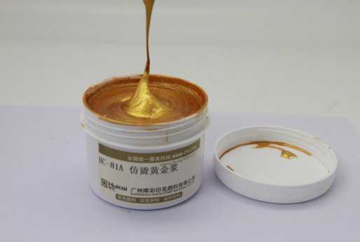 輝彩特亮仿燙金漿、仿燙銀漿是將一種類似珍珠閃爍光芒的物質(zhì)印制在織物上,能耐酸、耐高溫、手感好,并有很好的閃光效果,制成的仿燙金漿穩(wěn)定性好,長期暴露在空氣中也不會發(fā)暗。