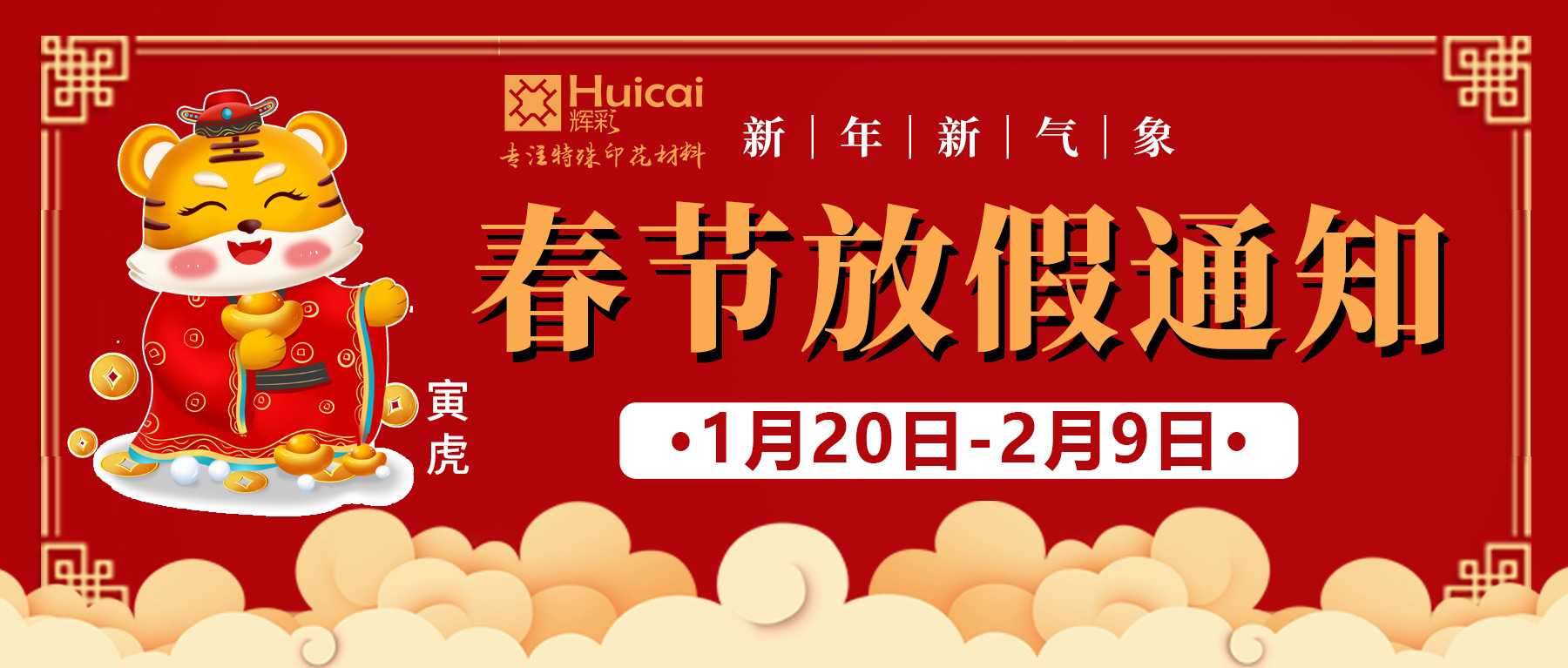 為了貴司在春節(jié)期間能正常的生產(chǎn)運作,特通知貴司,輝彩2022年春節(jié)假期定于2022年1月20日(農(nóng)歷臘月拾捌)放假,2022年2月10日(農(nóng)歷正月初十)正常上班發(fā)貨。如需備貨請于假期前確定下單訂貨,放假期間我司將暫停發(fā)貨,請各新老客戶提前備貨,以免影響貴公司正常生產(chǎn)。如有不便,敬請諒解!