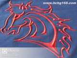 4、立體直角:采用立體直角油墨,只用普通的感光膠制作比一般略厚的網(wǎng)版,注意印時與圓角的方法相同。烘干時注意控制其溫度適當,要烘干但不能溫度過高,否則會破壞其立體直角的效果。