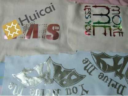 2、再將對(duì)應(yīng)燙布料、織物的燙金箔燙在燙金漿上,普通金銀紙色的燙印溫度為120°C左右,鐳射燙金紙的燙印溫度為130°C,時(shí)間均為15秒,(燙印時(shí)間、溫度可自行調(diào)整,以燙印效果不變色為準(zhǔn))。