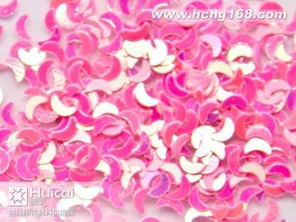 金蔥粉:又名閃光片。包括鋁質(zhì)金蔥粉,聚酯金蔥粉,幻彩粉,鐳射金蔥粉等。有鋁質(zhì),PET,PVC材質(zhì)。大小規(guī)格(size)由1/256(0、1mm)至1/8(3、0mm)。形狀有六角形,四角形,長條針形和不規(guī)則形狀,并有多種顏色可供選擇。各種材質(zhì)金蔥粉可不同程度承受高溫(由80*C,180*C,300*C不等) 。