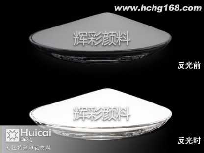 1、先用膠水打底一次  → 2、用銀粉與膠水?dāng)嚢杈鶆蛴〉诙?→ 3、直接印反光粉(不用加膠水),→用平壓機(jī)將反光粉壓入膠水的半徑厚度即可。